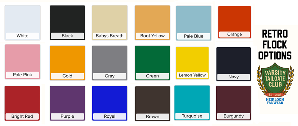 This design is made with flock for the retro look and soft feel. Your school merch could never.